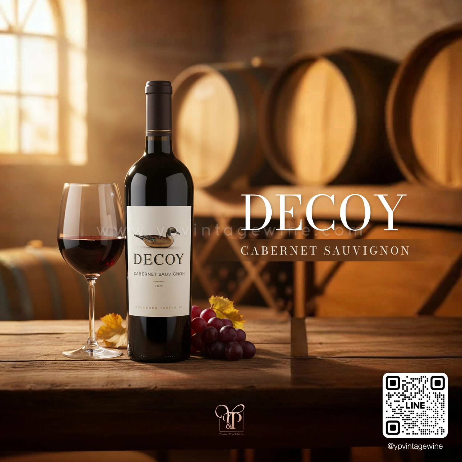 DUCKHORN DECOY CABERNET SAUVIGNON ปี 2022 กลิ่นผลเบอร์รีเข้ม เช่น แบล็กเบอร์รี บลูเบอร์รี มีเครื่องเทศอบ เช่น พริกไทยดำ เบกกิ้งสไปซ์บางเบา รสชาติโทนผลไม้เข้ม: ราสป์เบอร์รี บลูเบอร์รี พลัม มีความเข้มและโครงสร้าง (structure) จากแทนนินที่ชัดเจน ไม่ได้อ่อนจนเกินไป เสริมรสด้วยโน้ตเครื่องเทศ (spice) และโอ๊กรสแฝง เช่น พริกไทย, เบกกิ้งสไปซ์ ฟินิชนุ่ม กลิ่นติดท้าว ให้ความรู้สึกคงทน ปลายอวลไปทางผลไม้ + กลิ่นไม้เบา ๆ